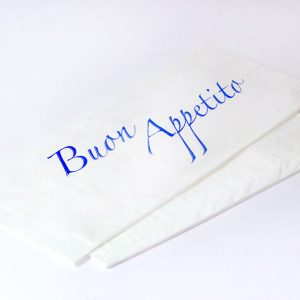 Tovagliette in carta bianca goffrata con stampa flessografica con colori ad acqua per alimenti misura 30x40cm. Tovagliette americane da utilizzare come sottopiatto, come copri vassoi e come abbellimento per la vostra tavola, utili anche come segnaposto, ideali per negozi gastronomici o anche da utilizzare a casa. Ottime per i tuoi aperitivi, cene, party, colazioni, o happy hour organizzati all’ultimo momento, con la comodità e la velocità di una tovaglietta usa e getta il tuo stuzzichino sarà un successo.